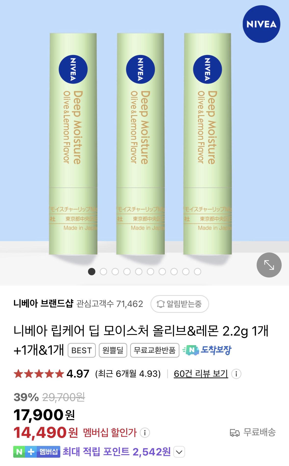 니베아 립케어 딥 모이스처가 네이버 단독 선런칭되어 할인 이벤트합니다!