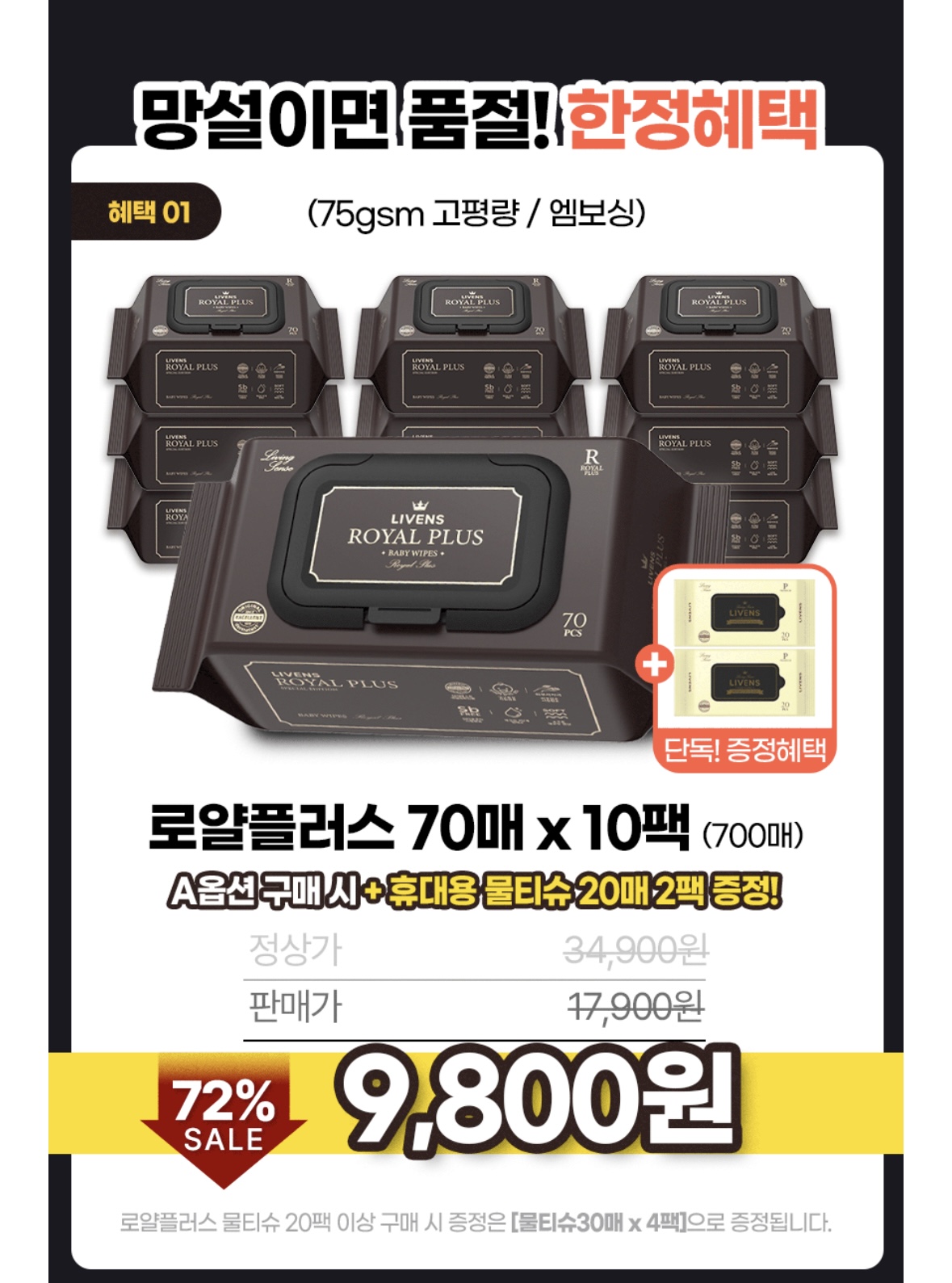 [카카오 쇼핑] 리벤스 로얄플러스 75평량 캡형 70매 10팩 | 핫딜 - 캔디팡