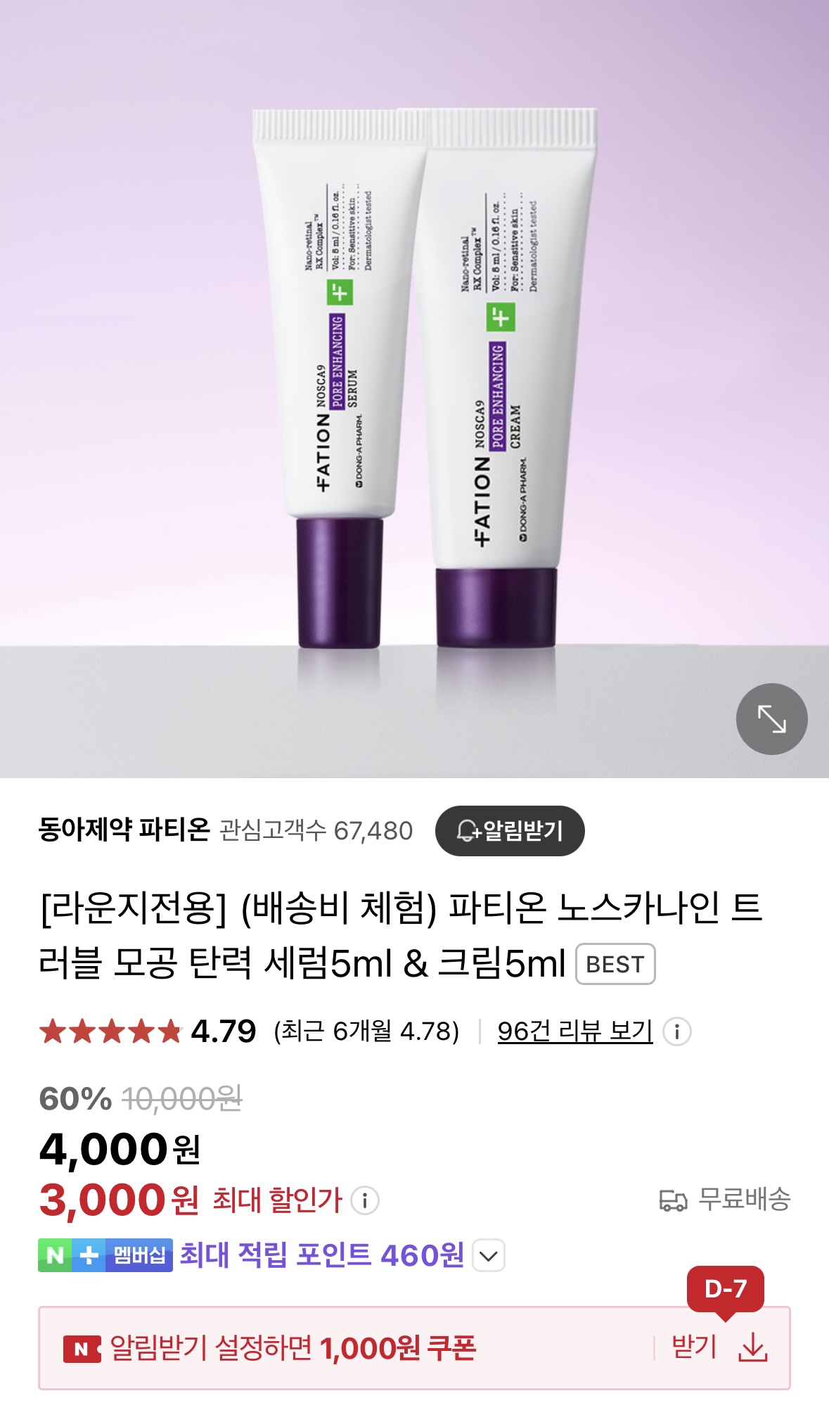 [네이버] 동아제약 파티온 노스카나인 트러블 모공 탄력 세럼5ml&크림5ml 체험딜 | 핫딜 - 캔디팡