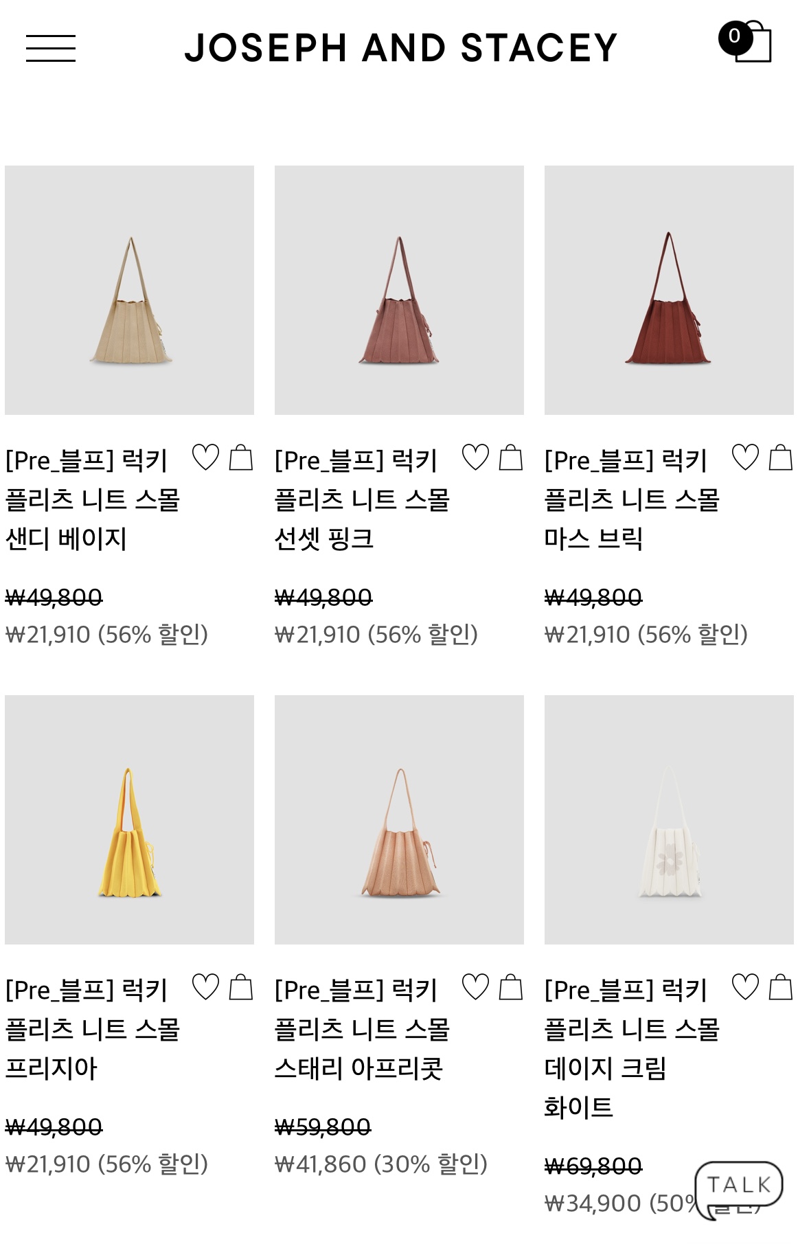 니트백으로 유명한 조셉앤스테이시 세일하네요!