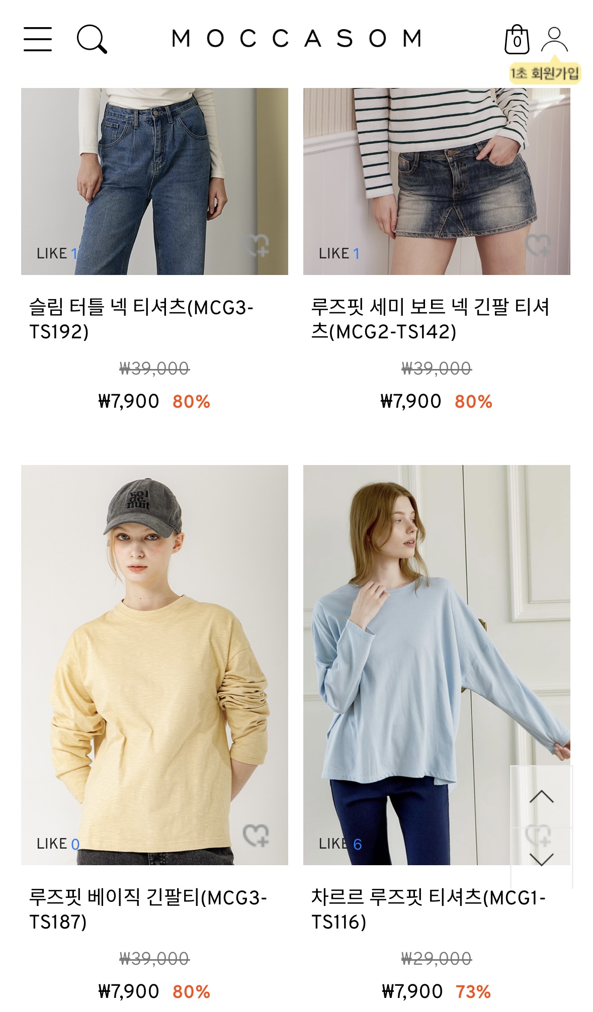 퀄리티 좋고 베이직한 옷들 많은 모카썸에서 패밀리세일해요! 세일 전 가격도 합리적인데 패밀리세일 가격은 더더 좋네요
