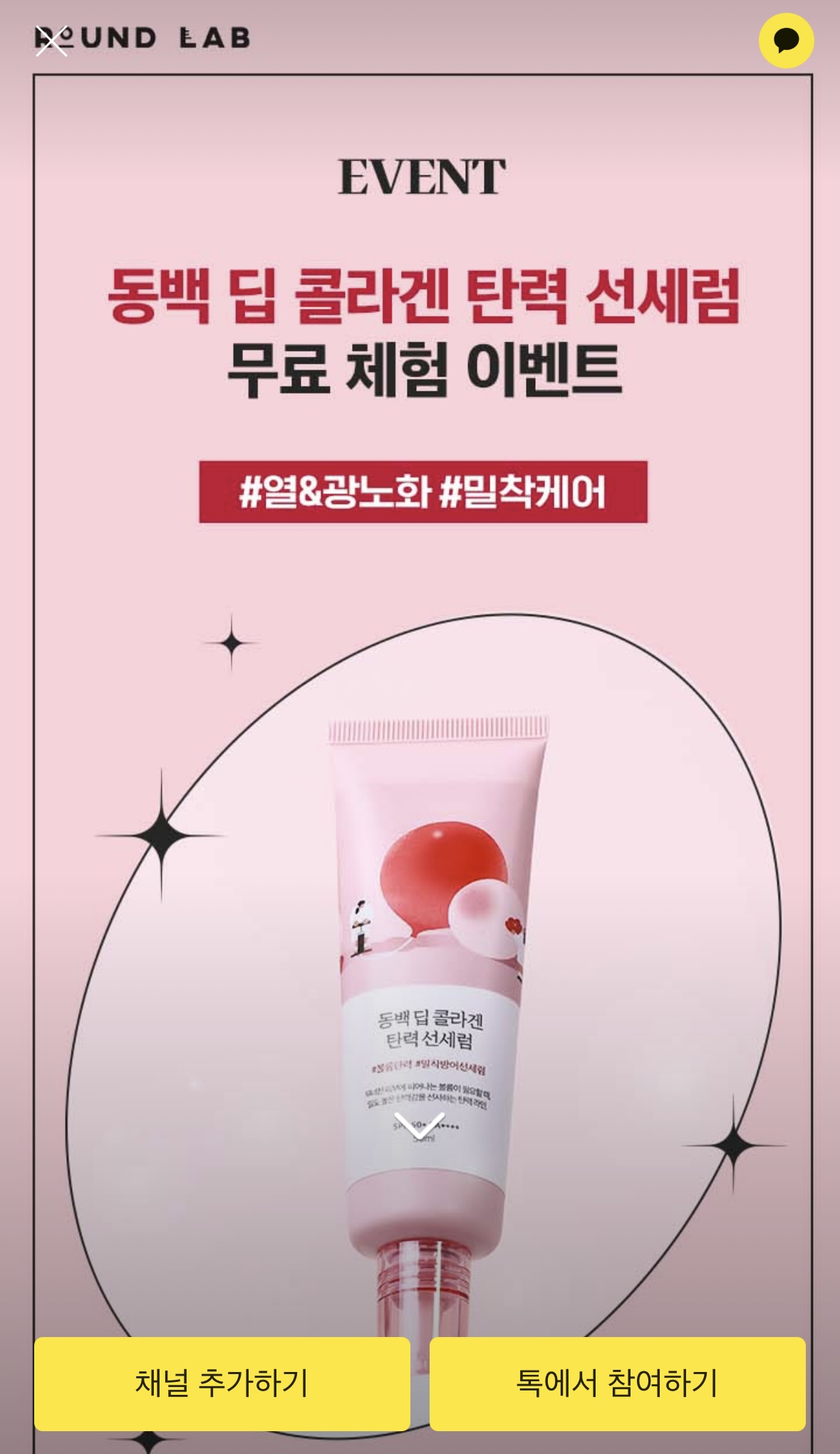 라운드랩 선세럼 샘플 신청 (우편) 1.5ml 3개 카카오톡 친구 추가하고 신청하시면 됩니당!신청해두면 잊을만하면 우편으로 도착해요https://ad-content.moment.kakao.com/adView/35758 카테고리 없음 2025.04.18