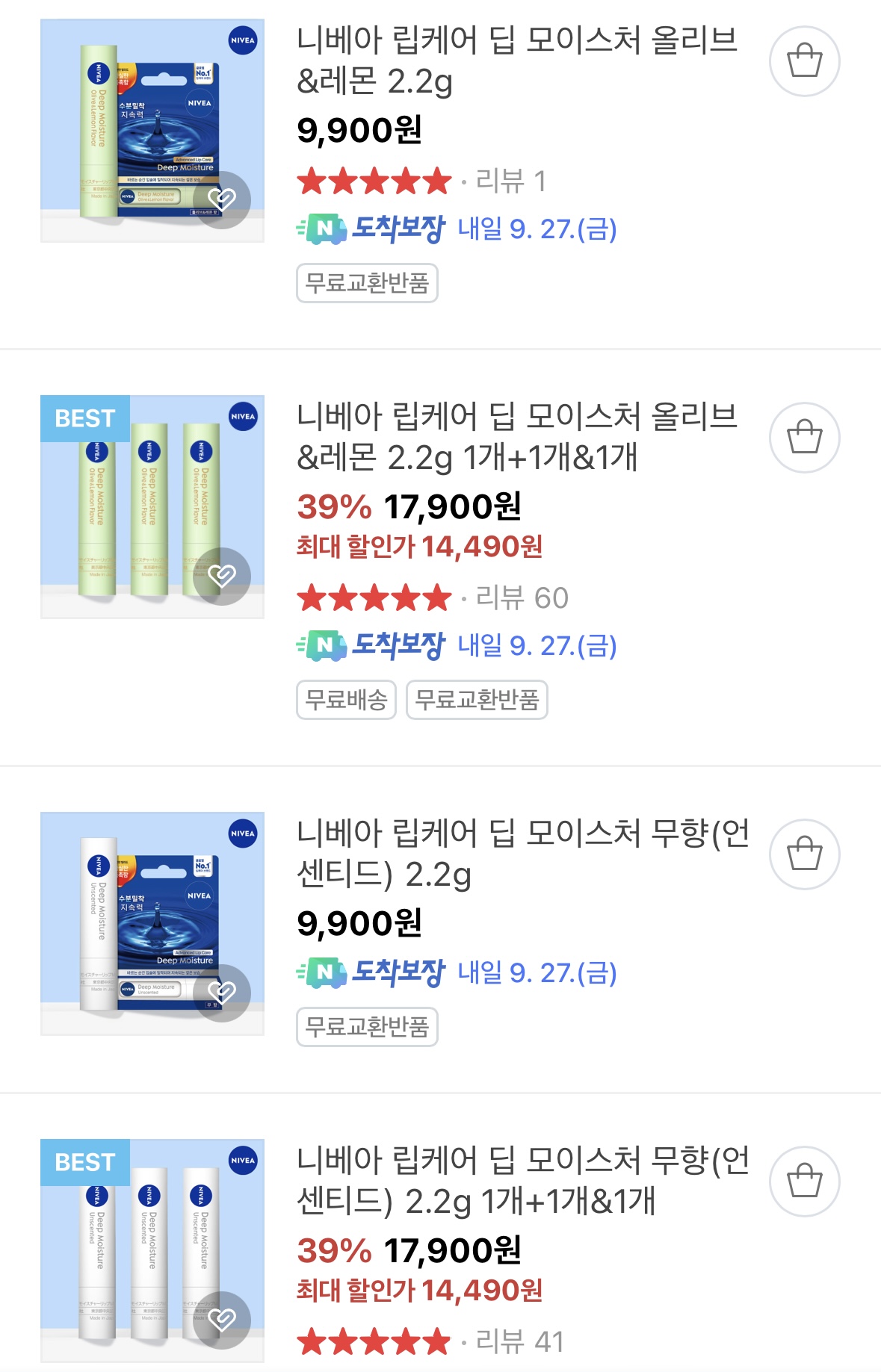 네이버-니베아 단독 선런칭 립케어 딥 모이스처 3개 14,490원 (9/23-9/29)