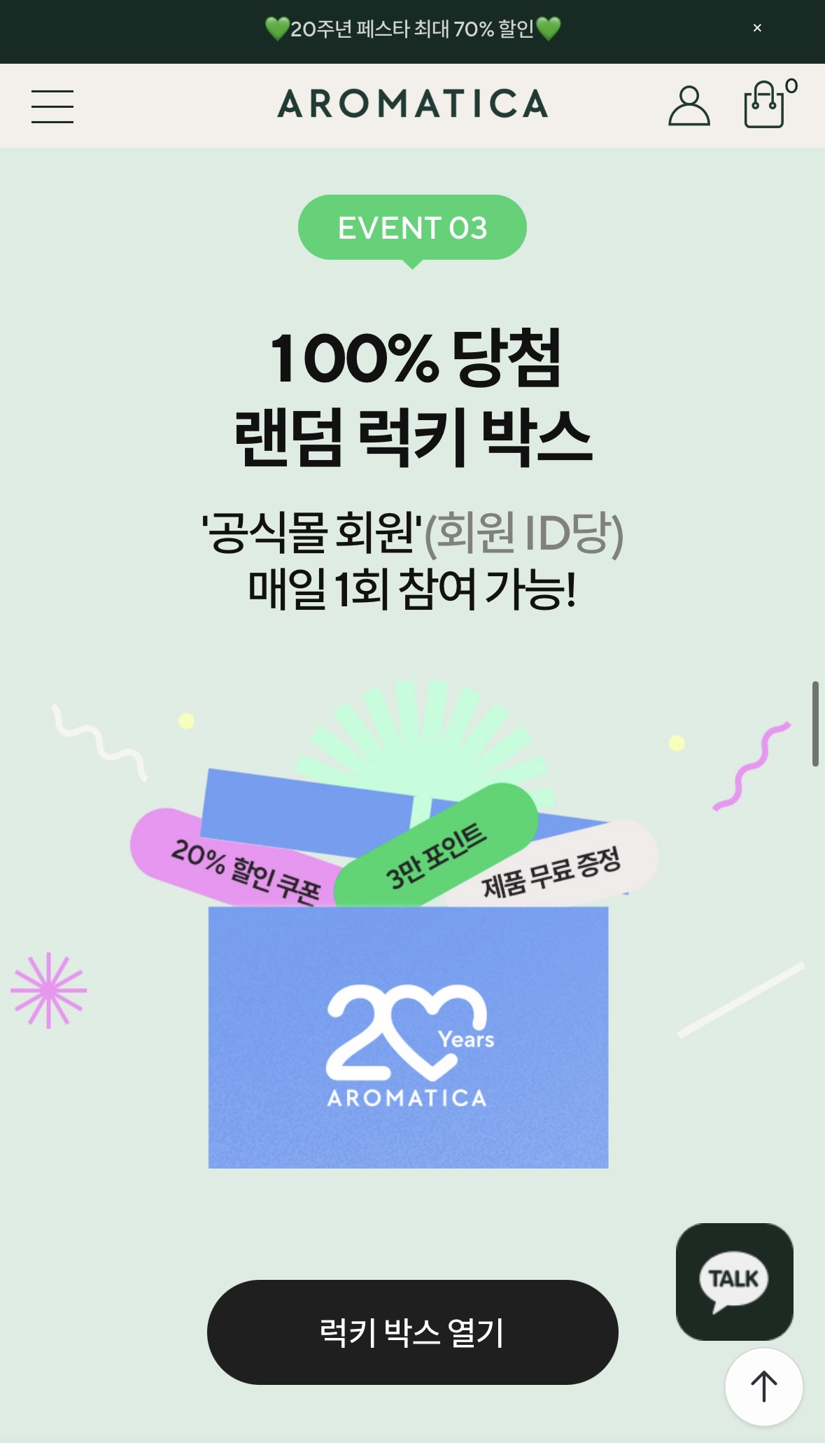 아로마티카 공홈 20주년 기념 최대 70%할인 (9/23~9/30)
