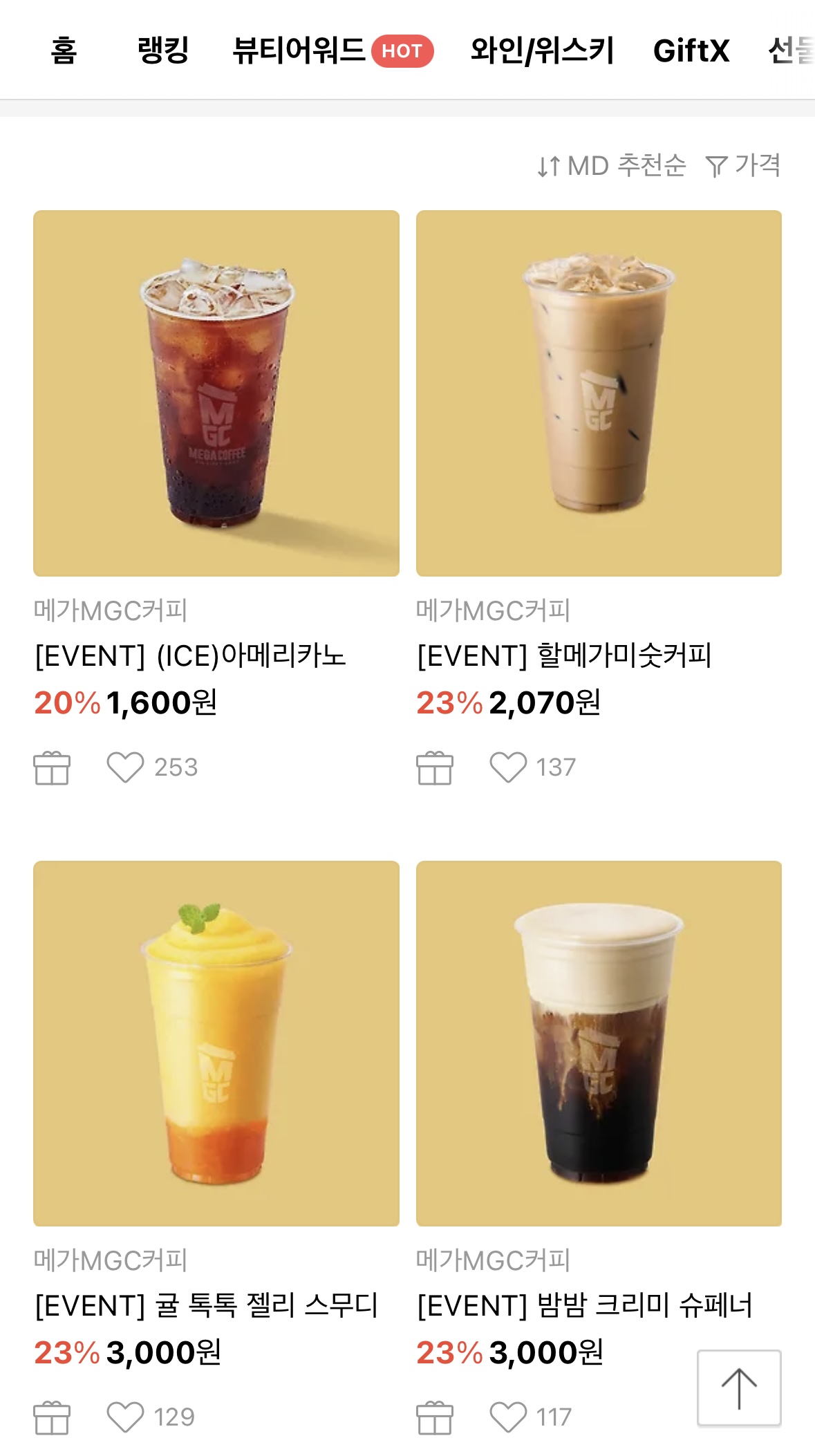 메가커피 23%할인 (카카오톡 선물하기) 9/23~9/30