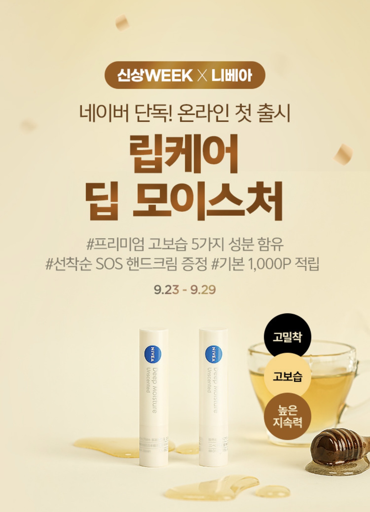 네이버-니베아 단독 선런칭 립케어 딥 모이스처 3개 14,490원 (9/23-9/29) 니베아 립케어 딥 모이스처가 네이버 단독 선런칭되어 할인 이벤트합니다! 한국엔 없고 일본에서 판매하던 립밤이라 일본 여행에서 쟁여오거나 직구해야하던 제품인데 한국런칭이라니 반갑네요 마트, 편의점에서 자주 보던 니베아보다 보습이 좋으니 건조해지는 가을 겨울용으로도 좋고 간단한 선물용으로도 좋겠어요 ❣️최대할인+후기작성시 포인트 적립시 체감 실구매가격 개당 3,982원 ❣️9/26 당일 라이브 기념 5% 할인쿠폰 추가지급 ❣️9/23-9/26 신상위크 기간내 립밤 3개 구성 구매시 니베아 sos핸드크림 75ml 증정 https://m.brand.naver.com/nivea/products/10828986077#QNA 니베아 립케어 딥 모이스처 올리브&레몬 2.2g 1개+1개&1개 : 니베아 브랜드샵[니베아 .. 핫딜 2024.09.26