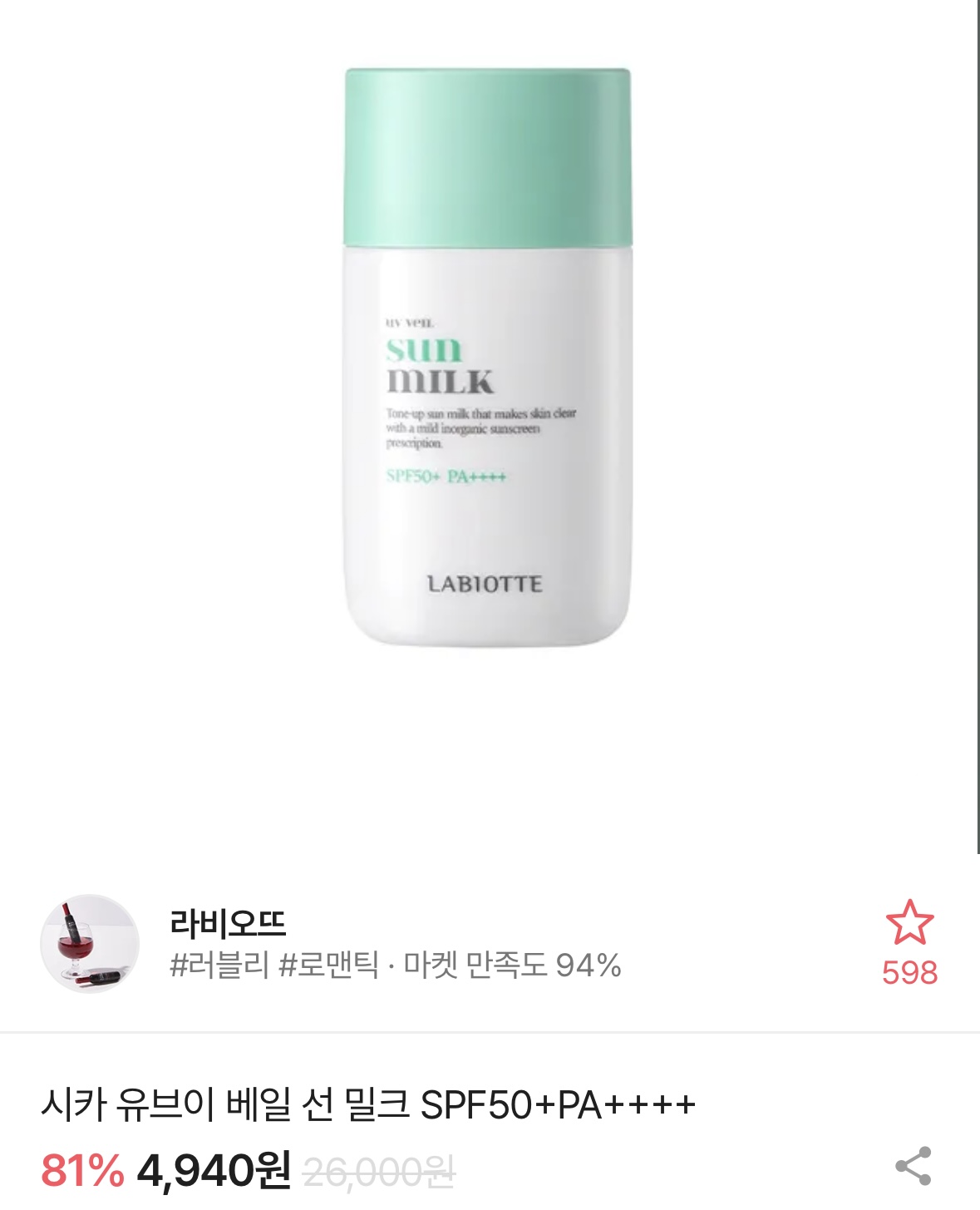 에이블리-라비오뜨 시카 유브이 베일 선 밀크 45ml 4,950원 톤업선크림 핫딜이네요! https://candypang.com/great-deal/802 [에이블리] 라비오뜨 시카 유브이 베일 선 밀크 45ml | 핫딜 - 캔디팡candypang.com 카테고리 없음 2024.10.09